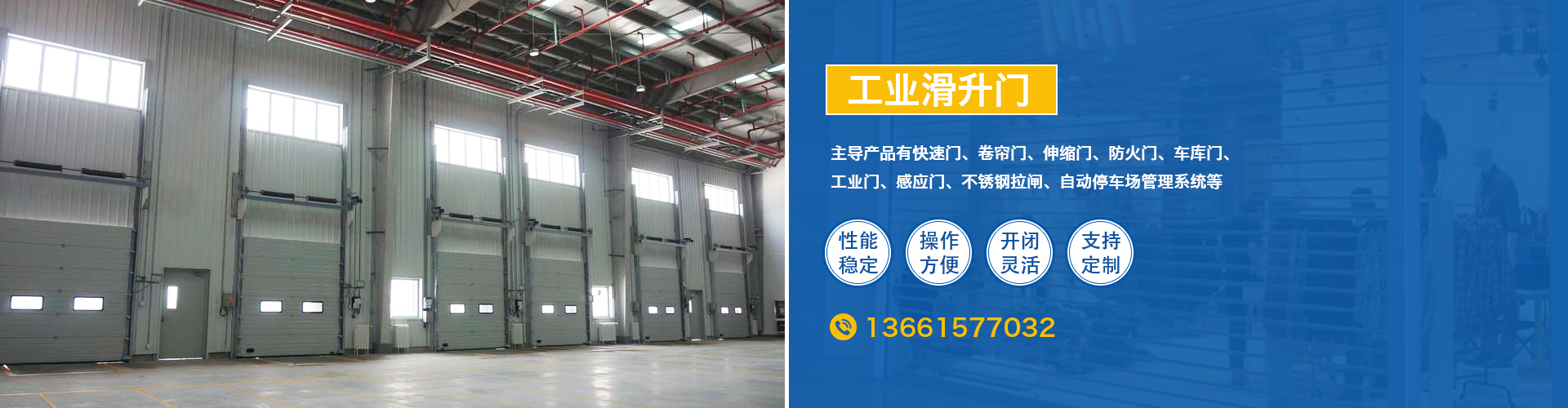 公司主導產品有快速門、卷簾門、伸縮門、防火門、車庫門、工業門、感應門、不銹鋼拉閘、自動停車場管理系統及一系列不銹鋼類、鑄鐵類產品(包括崗亭、旗桿、圍欄、扶手、感應門、報欄、車庫門、雨棚等),款款 新穎、件件精美。產品以其出眾的品質、良好的性能和優美的外觀受到廣大客戶的普遍贊譽,在上海及周邊省市已樹立了良好的口碑,成為黨政機關、企事業單位、部隊、學校、體育場、住宅區的需要產品。在長期的發展中公司不斷積累著運營經驗,形成了多元化的企業經營模式。